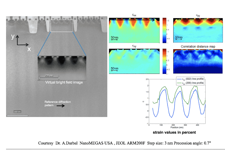- High spatial resolution, high precision strain mapping in modern semiconductor devices.